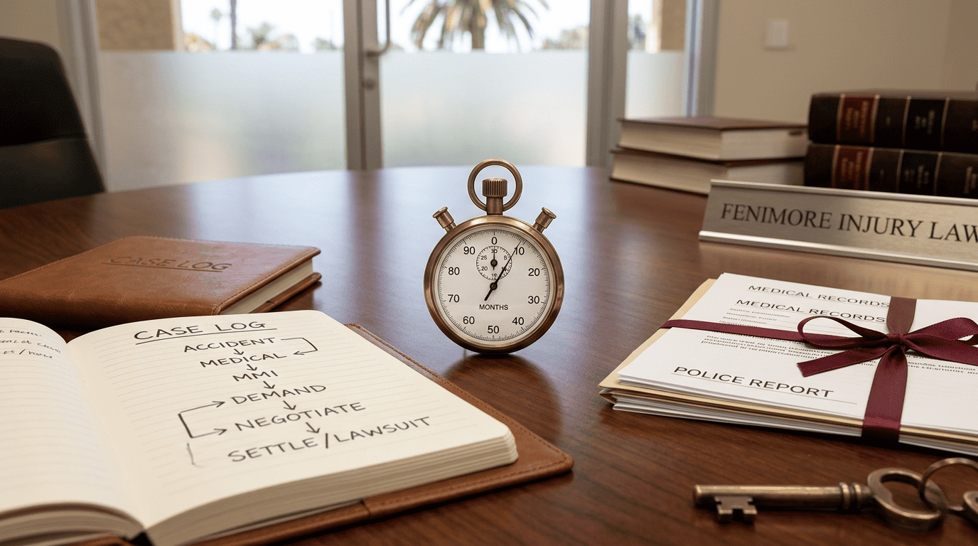 For most people, a car accident timeline falls between a few months and a year. The key is balancing patience with strategy. With the right legal guidance, you can move your case forward efficiently while still protecting your right to full compensation. Contact Fenimore Injury Law today for help with you case.